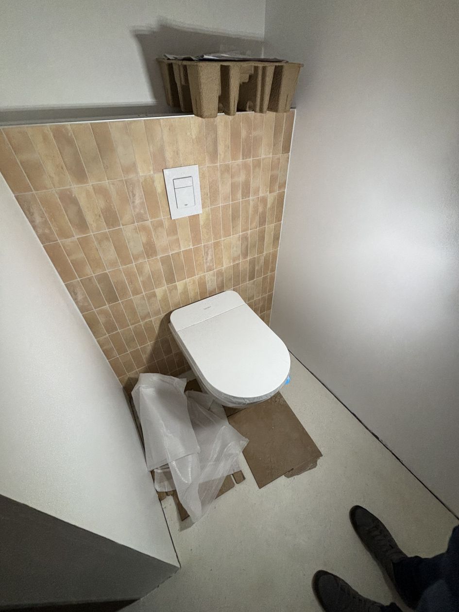 Aménagement des pièces d'eau et pose d'un WC lavant.